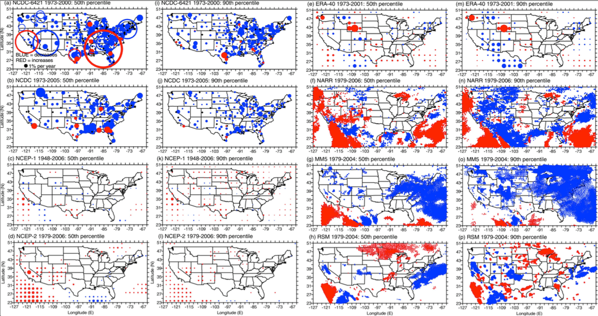 Reading over the article certainly makes me a tad cautious about concluding anything firm from their results. The raw in situ data measurements seem to show significant declines in wind speed in many areas. However, the NCEP-1 reanalysis data set does not necessarily. So, the results you get differ substantially if you trust the in situ measurements or the reanalysis. The paper itself dances rather skillfully around supporting one or the other, simply arguing that “in contrast to temperature and precipitation, data sets of wind speed drawn from in situ measurements and reanalysis products exhibit substantial discrepancies both in terms of absolute magnitude and the sign of temporal trends over the last 30-50 years.”