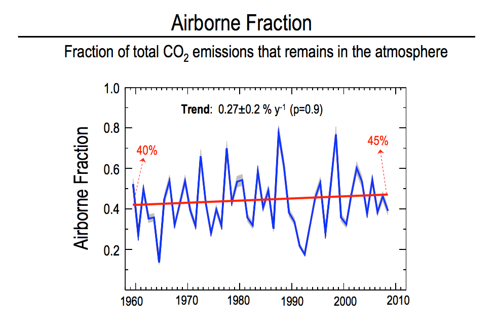 That there is a slight change in the airborne fraction over some period is not relevant to what I said. What I said was very specific, and was that the concentrations of CO2 have been in line with predictions, not greater than.