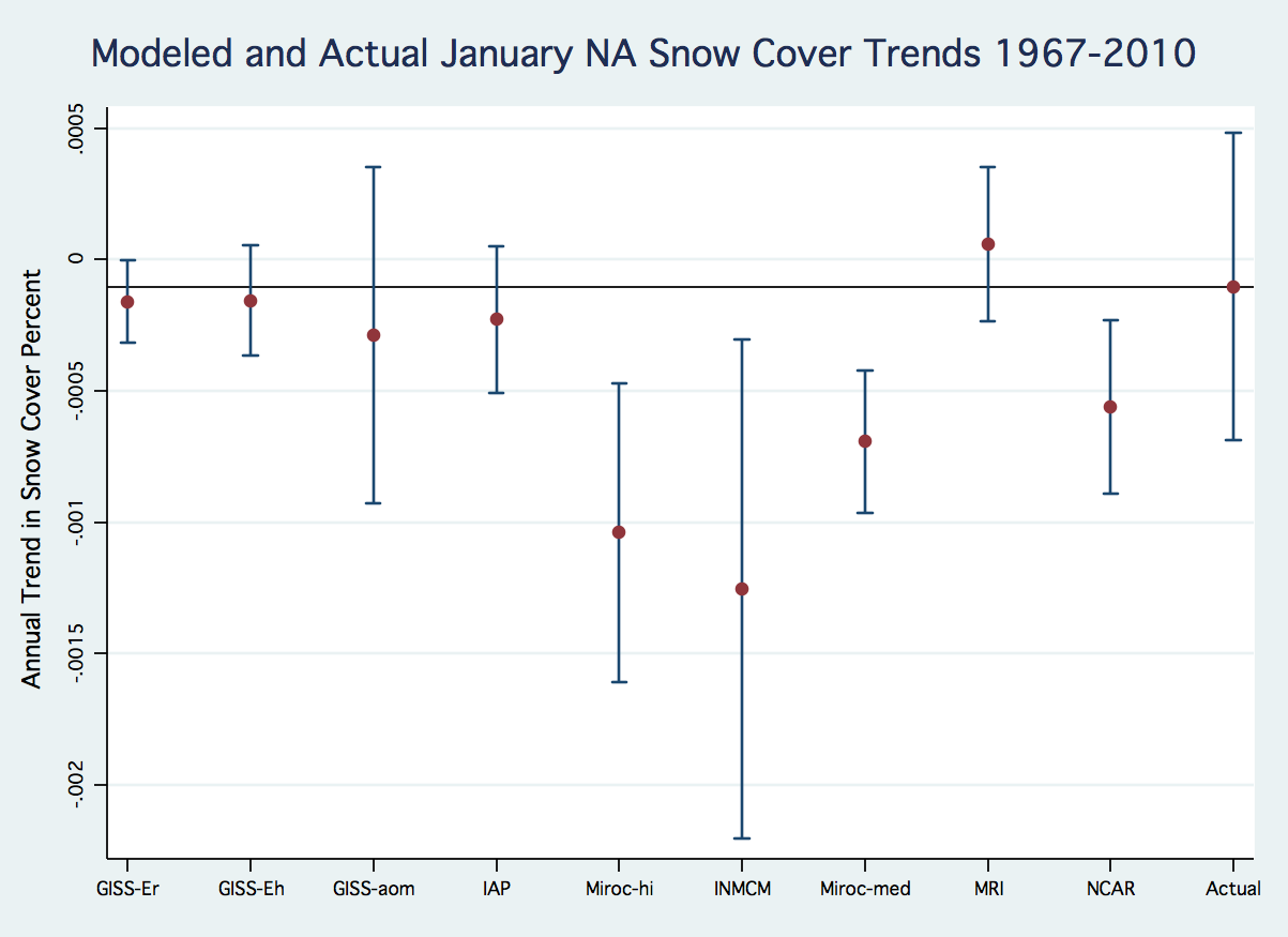 On the one hand, this means that in the “scientist vs. Morano DC snow incident”, the scientist should have shout his trap. More snow in NA is not what the models predict. It’s weather. On the other hand, I’m pretty sure if we get all the weather noise in the models, and the snow rate itself we just aren’t going to show they are clearly wrong on this.
