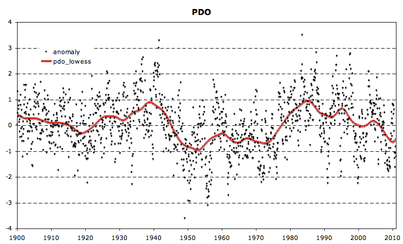 Thanks. I hadn’t see that one, just the U of Washington PDO index. What I had noticed was the surface temperatures in coastal Alaska followed the PDO (somewhat, just eyeball), but the decreases were about half the increases. The PDO and AMO just moves heat around, what happens to the heat would impact the surface temperature anomaly. So I would not expect direct relationship between the oscillations and GTA. Precipitation change with the oscillation may be a better of what impact on GTA they may have. Just thinking a typing (aloud?).